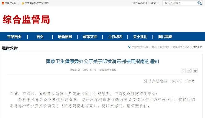 • 日前,國家衛(wèi)生健康委辦公廳發(fā)布了引發(fā)消毒劑使用指南的通知。 各省、自治區(qū)、直轄市及新疆生產(chǎn)建設兵團衛(wèi)生健康委,中國疾病預防控制中心:   為科學指導公眾正確使用消毒劑,充分發(fā)揮消毒劑在新冠...